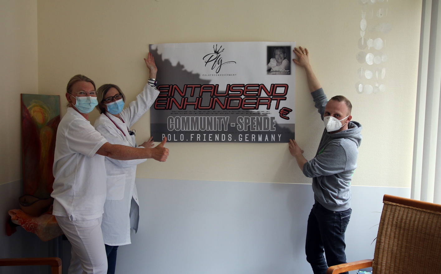 Wir bedanken uns herzlich bei Nils Warschun, Gründer und Betreiber der Polo.Friends.Germany Seite, der diese Spendenaktion ins Leben gerufen hat, sowie bei allen Spendern der Polo.Friends Community! Wir freuen uns sehr über diese Unterstützung und Wertschätzung unserer Arbeit auf der Palliativstation.