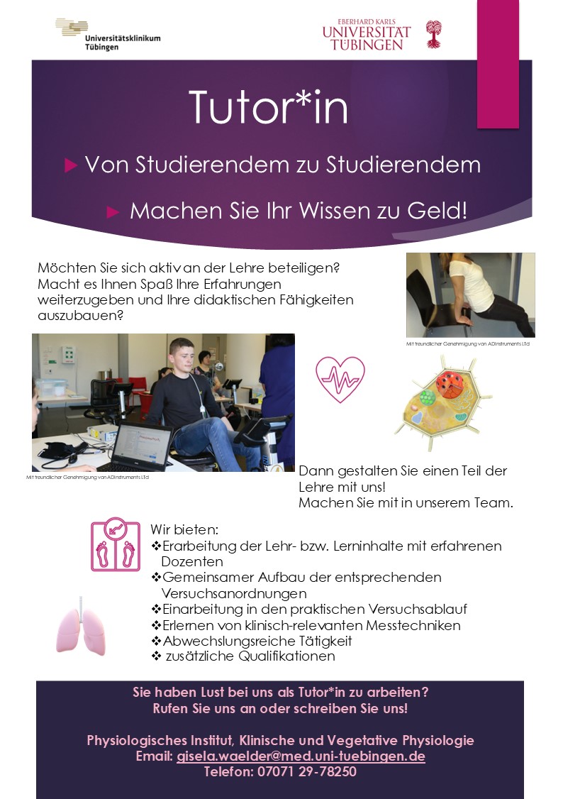 Nach bestandener M1-Prüfung (Physikum) können Sie Ihr Wissen über die Physiologie vertiefen und Ihre didaktischen Fähigkeiten ausbauen!