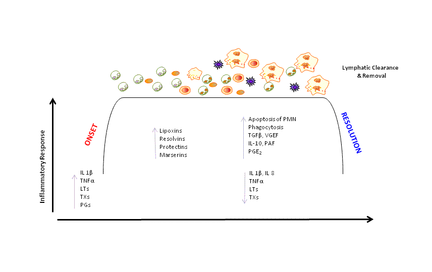 Eine akute Entzündungsreaktion kann durch ein Gewebetrauma oder durch eine mikrobielle Invasion bedingt sein. Nach Beendigung der Akutphase dieser Entzündungsreaktion ist es in der Folge essentiell, dass die rekrutierten Entzündungszellen aus dem betroffenen Gewebe geklärt werden, um so eine Rückkehr zur Gewebshomöostase zu gewährleisten.
