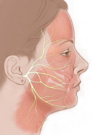 - Nervenrekonstruktion (primäre Nervennaht, Nerveninterponat mit N. auricularis magnus oder N. Suralis))