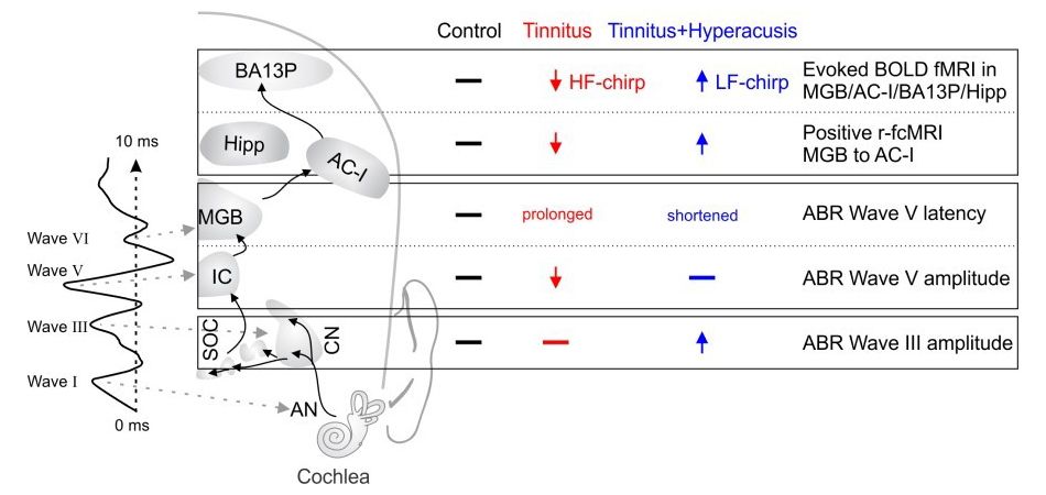 Jeden Tinnitus ist unterschiedlich, aber Stress ist ein gemeinsamer Nenner. Je nach Intensität kann dieses ständige Klingeln auf einem oder beiden Ohren eine persönliche Tragödie mit stark negativen Auswirkungen auf die Lebensqualität sein. Tinnitus, eine sehr häufige Erkrankung, betrifft etwa ein Sechstel der Allgemeinbevölkerung. Eine kurative Therapie des Tinnitus existiert derzeit noch nicht, und ihr Fortschritt wird meist durch die bestehenden kontroversen Ansichten über das neuronale Korrelat des Tinnitus behindert, die je nach Vorhersage entweder die Unterdrückung oder die Verstärkung der Gehirnaktivität erfordern würden. Wir stellten die Hypothese auf, dass die Variabilität des Tinnitus mit oder ohne gleichzeitiges Auftreten von Hyperakusis (einer gesteigerten Geräuschempfindlichkeit) (T- oder T+H) zu diesem Dilemma beigetragen hat.