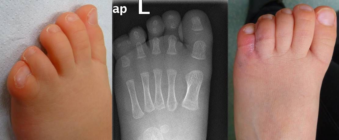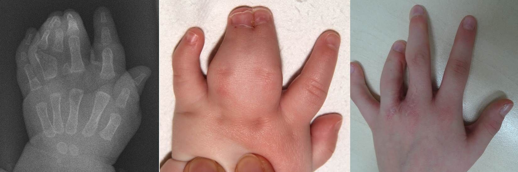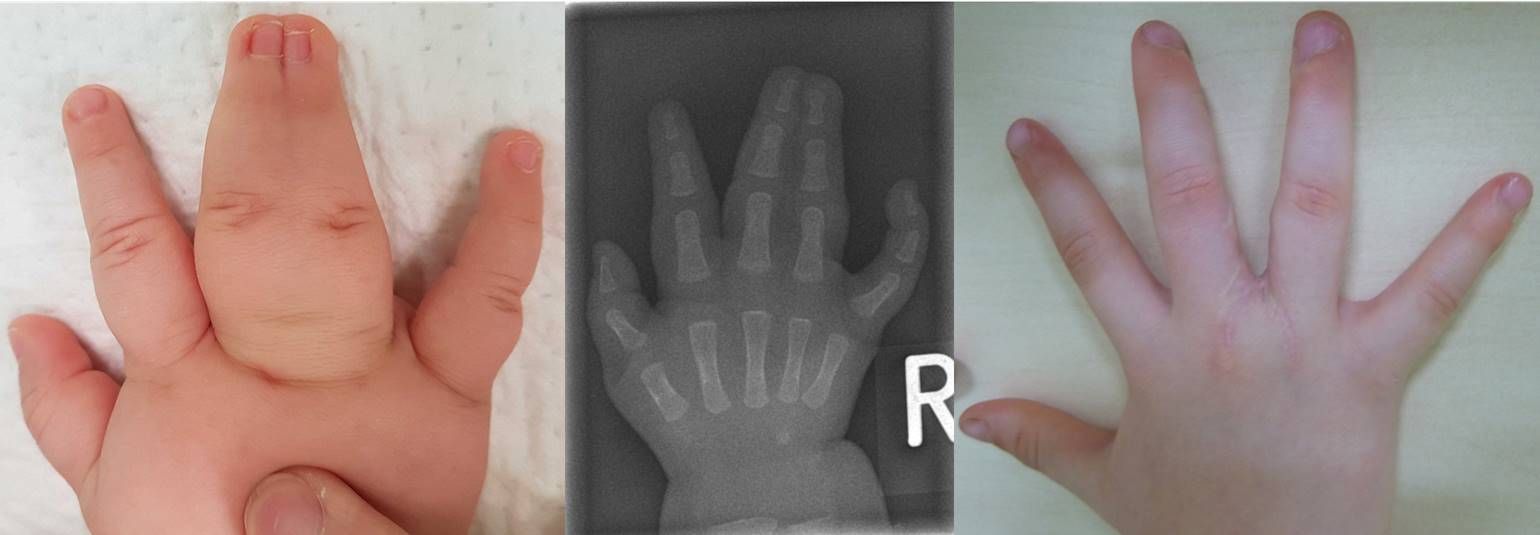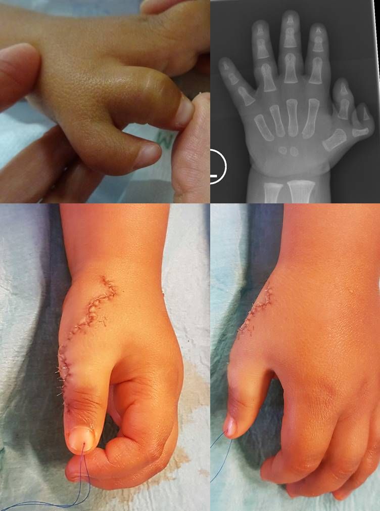 Die einfachste Form besteht in einer rudimentären Anlage des gedoppelten Fingers als kleines Anhängsel, dessen operative Entfernung unkompliziert ist und ab dem 3. Lebensmonat ambulant durchgeführt werden kann.