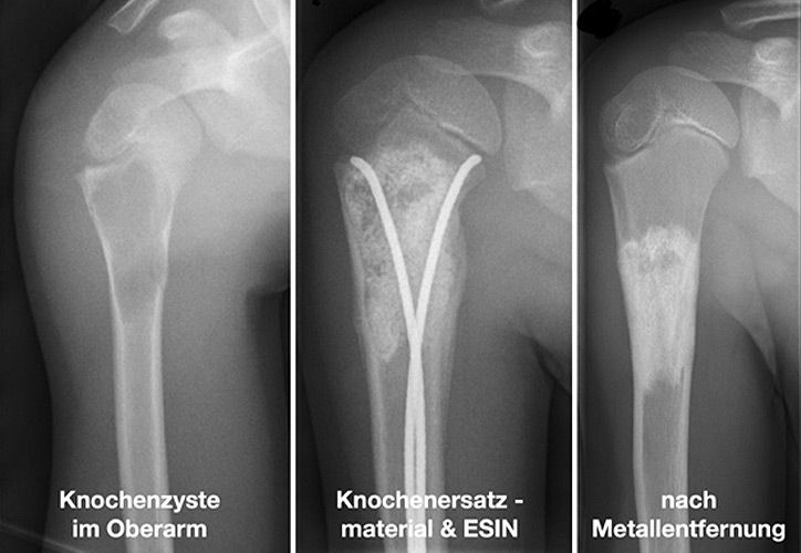 Knochenzysten sind die häufigsten gutartigen tumorähnlichen Knochenläsionen im Kindes- und Jugendalter und machen in großen Sammelstatistiken 13-19% dieser Läsionen aus. Es werden die juvenilen und aneurysmatischen Knochenzysten unterschieden. Der Altersgipfel für die meist zufällige Erstdiagnose liegt zwischen dem 9. und 13. Lebensjahr. Die Lokalisation der Knochenzyste verteilt sich nach Literaturangaben auf den Oberarm (ca 50%), den Oberschenkel (ca 30%), den Unterschenkel (ca 10%), aber sie können an allen Knochen vorkommen. Die genaue Pathogenese ist unklar, es werden jedoch lokale Wachstumsstörungen in der Entstehungsphase des Röhrenknochens diskutiert.