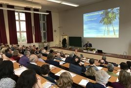 Am 16. März fand unter der wissenschaftlichen Leitung von Professor Dr. Peter Kremsner und Dr. Dr. Carsten Köhler der 22. Tübinger Tag der Impf- und Reisemedizin im Hörsaal des Gebäudes in der Wilhelmstrasse 27 statt. Erneut war der Saal bei dieser Veranstaltung der RG Gesellschaft unter der Schirmherrschaft des Kompetenz-zentrums Tropenmedizin Baden-Württemberg mit mehr als 200 ärztlichen Kolleginnen und Kollegen aus Baden-Württemberg übervoll. Neben einem aktuellen Überblick zur Epidemiologie tropenmedizinischer Erkrankungen und einem Update zu den Reiseimpfungen und der Malariavorbeugung gab es klinische Fallbeispiele und einen Vortrag zu Reisesouveniers beim Dermatologen. Höhepunkt war ein Reisemedizin-Quiz, bei dem die Anwesenden sich spielerisch das gesamte Gebiet der Reisemedizin erarbeiten und dabei ihr über die vergangenen Jahre gesammeltes Fachwissen abrufen konnten.