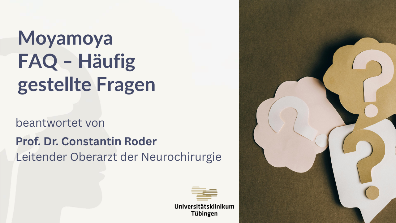 Wird die Moyamoya-Diagnose gestellt, haben die Patientinnen und Patienten viele Fragen: Wie lange dauert die OP? Müssen mir dafür die Haare abrasiert werden? Kann ich anschließend wieder Auto fahren? Ist Moyamoya vererbbar? Diese und weitere Punkte erläutert unser Experte, Dr. Constantin Roder, im Video.