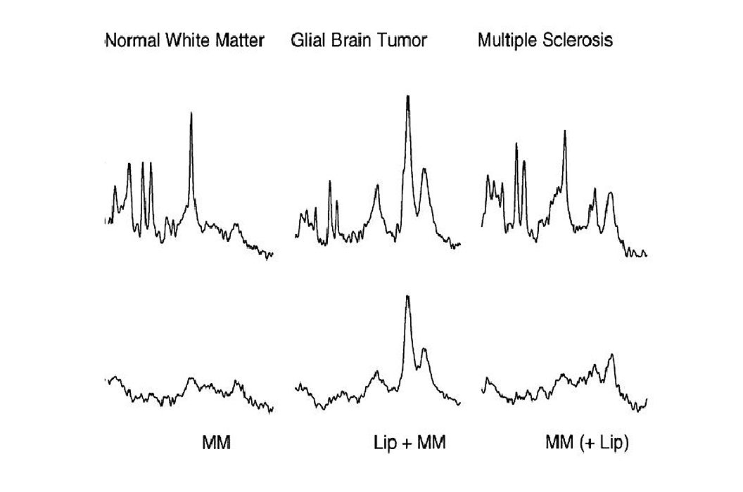 Spektroskopische Untersuchungen des Gehirns können zusätzliche diagnostische Informationen für die Beurteilung von pathologischen Veränderungen des Gehirns liefern, so z.B. zur Charakterisierung von Hirntumoren oder von Läsionen bei Patienten mit multipler Sklerose (Abb. 1).