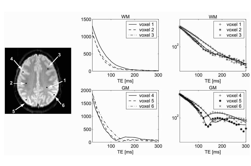 Wenn die äußeren Bedingungen sich nicht ändern, aber in Gradientenechosequenzen bei wiederholten Messungen die Echozeit geändert wird, kann der Abfall des Signals mit der Echozeit genauer untersucht werden. Dabei können Signalbeiträge unterschiedlicher Bestandteile des Gehirns wie z.B. des Hirngewebes und der umgebenden Flüssigkeit differenziert werden. Diese Information kann z.B. bei Patienten mit Hydrozephalus oder nach einem Schlaganfall diagnostische Bedeutung bekommen. Alle diese genannten Verfahren erfordern für jede Anwendung die Entwicklung spezieller Programme für die automatische Auswertung von großen Datenmengen.