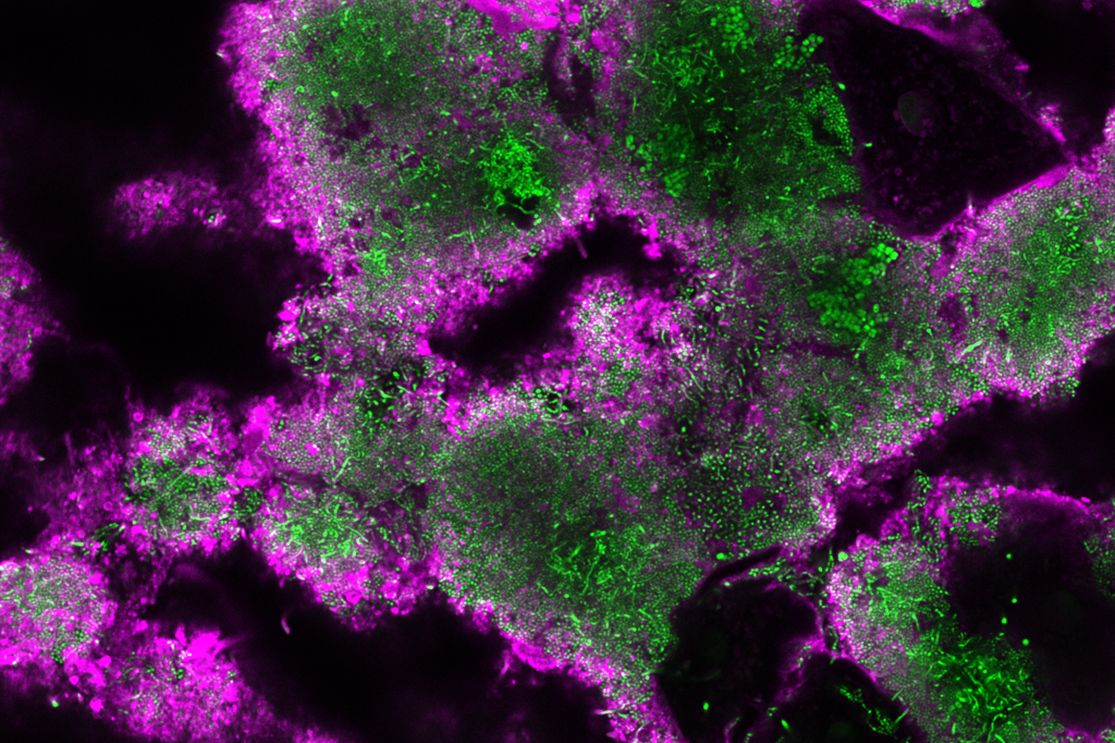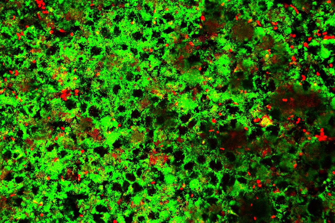 Unser Forschungsschwerpunkt ist momentan die Untersuchung des oralen Mikrobioms (darunter versteht man die Gesamtheit aller in der Mundhöhle vorhandener Mikroorganismen und Bakterien) und dessen Bedeutung für die orale Gesundheit. Wir wissen heute, dass ein gesundes Mikrobiom im Gleichgewicht mit dem Wirtsorganismus steht, wenn aber dieses Gleichgewicht gestört ist, spricht man von einer Dysbiose und es können Erkrankungen wie Karies, Gingivitis und Parodontitis entstehen. Weit mehr als 700 verschiedene Bakterienarten gibt es in der oralen Flora. Diese Bakterien leben in der Mundhöhle im Wesentlichen in Biofilmen. Biofilme bedecken die Zahnoberfläche und stellen für die Mikroorganismen einen Schutz vor äußeren Einflüssen dar, ermöglichen die Kommunikation zwischen verschiedenen Bakterienarten (Quorum sensing) und bewirken, dass Bakterien wesentlich resistenter gegen Antibiotikabehandlungen oder antimikrobielle Spüllösungen sind.