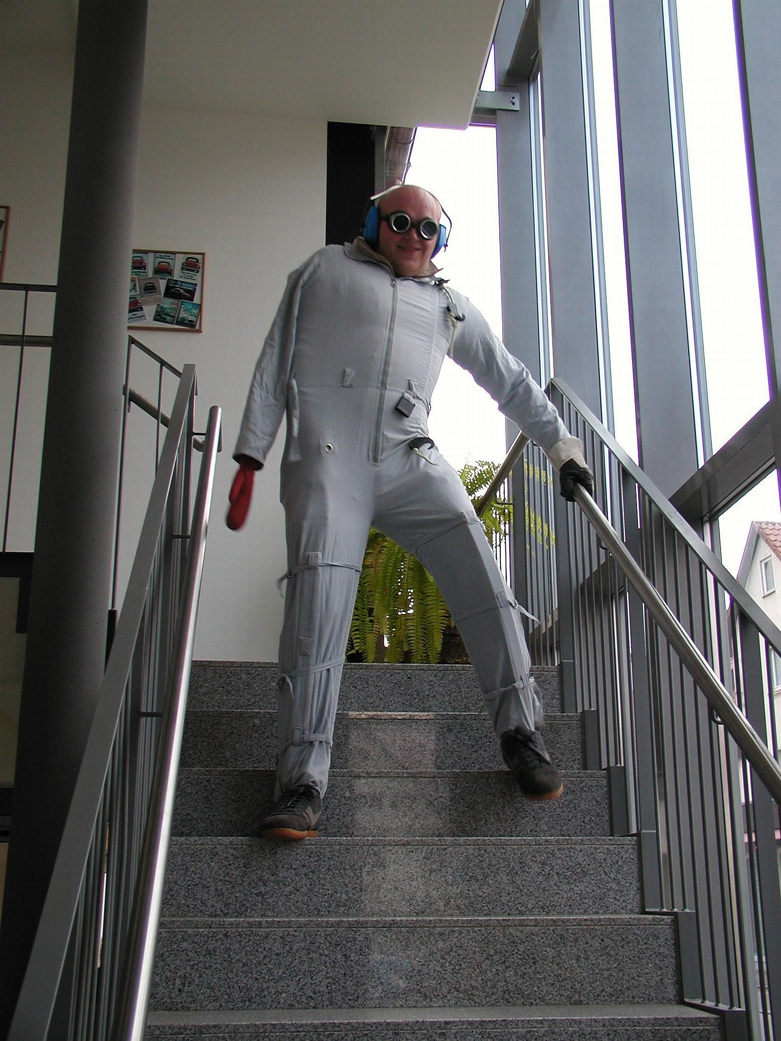 Wir stellen den Anzug in der Lehre und im Rahmen von Fortbildungen vor. So finden z.B regelmäßig Schulungen für Handwerker im Rahmen des Projekts "Service Plus" in mehreren Landkreisen statt.