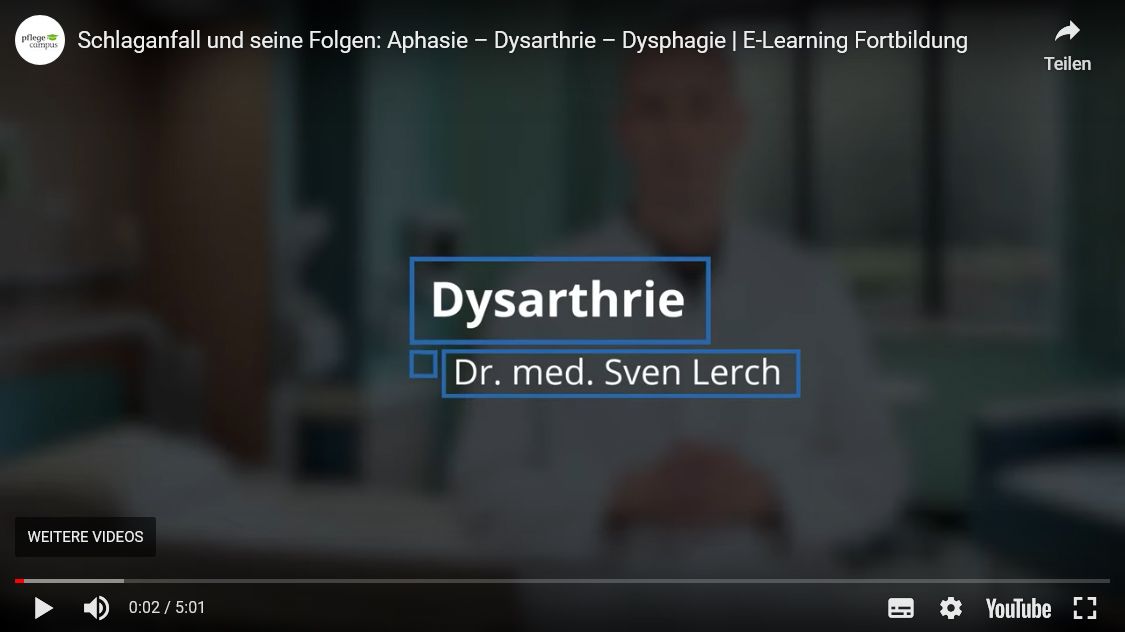 Beeinträchtigt können die Wahrnehmung (die Sensorik) und/oder die Bewegungsabläufe in der Koordination und durch Kraftminderung (die Motorik) sein. Es kommt zu einer Störung des Schluckvorgangs. Bei einer Schluckstörung besteht die Gefahr, dass Speichel, Nahrung oder Flüssigkeiten in die Atemwege gelangen. Man spricht hier von einer Aspiration (siehe Video). Kommt eine Aspiration gehäuft vor und wird eventuell nicht bemerkt (stille Aspiration), kann es zu einer Lungenentzündung, einer sogenannten Aspirationspneumonie, kommen. Weitere Auswirkungen einer Dysphagie sind unter anderem Unter- und Mangelernährung, Gewichtsverlust, oder Dehydrierung.