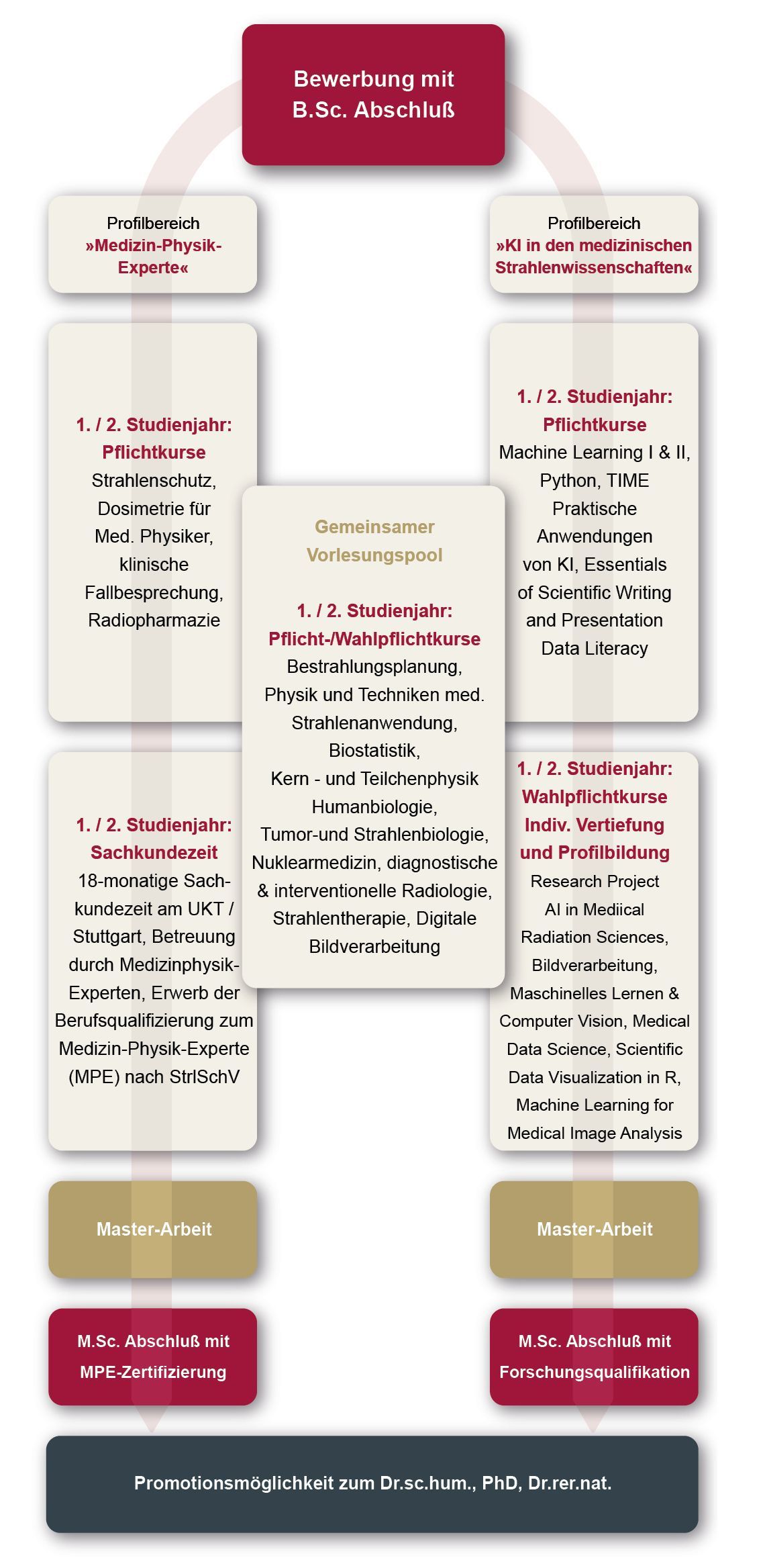 Du interessierst dich für Medizin und Physik oder für Medizin und Maschinelles Lernen? Du möchtest nicht nur praxisnah in der Strahlentherapie, Nuklearmedizin oder Bestrahlungsplanung arbeiten, sondern wissenschaftlich an den neuesten Entwicklungen mitwirken? Dann ist der Masterstudiengang Medizinische Strahlenwissenschaften mit seinen beiden Profilbereichen „Medizinphysik-Experte“ und „Künstliche Intelligenz“ genau das Richtige für dich!