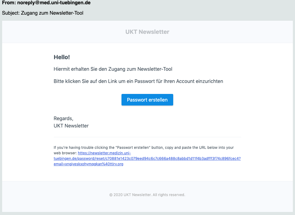 Nachdem ein Passwort festgelegt wurde, können Sie sich über die Seite https://newsletter.medizin.uni-tuebingen.de/ anmelden.