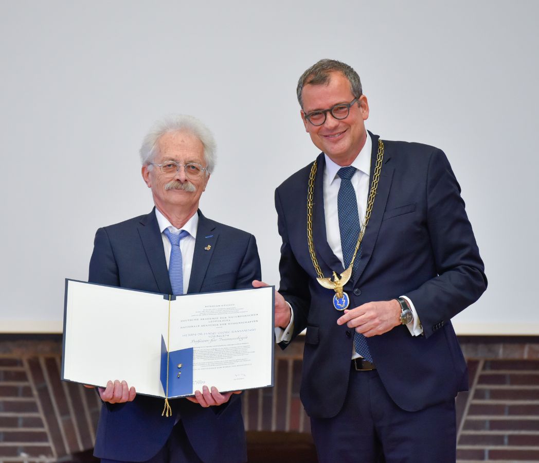🏆 Almost a year ago, our iFIT spokesperson Hans-Georg Rammensee was elected into the German National Academy of Sciences Leopoldina. To make his admission official, he recently received his certificate during the ceremony of his specialist class by Leopoldina President Prof. Dr. Gerald Haug on April 19, in Halle (Saale). During the following scientific symposium Prof. Rammensee gave a talk on “The peptides at the center of the immunological synapse: essential in health and disease”.