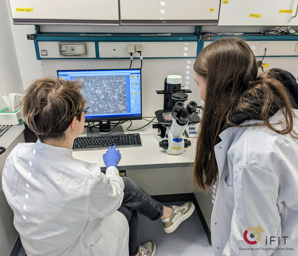 Carnival vacations in Baden-Württemberg! For many, this means getting into costume and going to the next party of the local carnival guild! But there are also other ways to spend your free time. For example, we had a three-day visit from Jule, a 12th grade student who wanted to get a behind-the-scenes look at cancer research. For her seminar paper on the topic of cancer research, and in particular breast cancer, she was looking for ways to shed light on the subject from a practical perspective. We were very pleased about such a request and made it possible for Jule to do a short internship with us for three days. Jule started with a flying visit to the Werner Siemens Imaging Center, where Dr. Christoph Trautwein explained the topic of breast cancer in more detail to Jule in a first expert talk. This was followed by the transfer to nuclear medicine, where Dr. Daniel Dauch was already waiting for Jule to explain molecular processes in cancer research. The last two days of the internship were devoted to laboratory work. After an introduction to breast cancer and immunotherapies, Jule was allowed to join Dr. Wurzer in the iFIT labs and look over her shoulder as she conducted experiments. The short stay was definitely worth it for Jule and we were happy to have brought the topic as exciting and informative as possible to the hopefully young offspring.