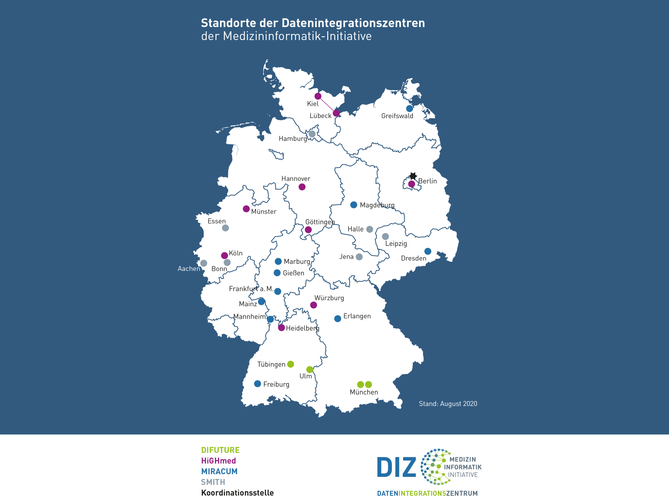 Die Konsortien der Medizininformatik-Initiative (MII) haben an ihren universitätsmedizinischen Standorten Datenintegrationszentren (DIZ) eingerichtet. In diesen neuen Einrichtungen werden Forschungs- und Versorgungsdaten eines Universitätsklinikums gesammelt, wobei Datenqualität und Datenschutz eine wesentliche Rolle spielen. Das DIZ ist meist eine Einrichtung im Klinikum und generell eng mit den klinischen Rechenzentren verbunden, womit eine enge Anbindung an die Systeme der Krankenversorgung gewährleistet ist. Zu den Aufgaben der DIZ gehört die Übernahme von Daten aus vielfältigen datenliefernden Systemen, die Zusammenführung und Aufbereitung dieser Daten sowie die Sicherstellung von Datenqualität und Datenschutz. Die aufbereiteten Daten werden dann zur Nutzung für die medizinische Forschung bereitgestellt und Forschungsergebnisse werden über die DIZ in die Versorgung zurückgeführt.