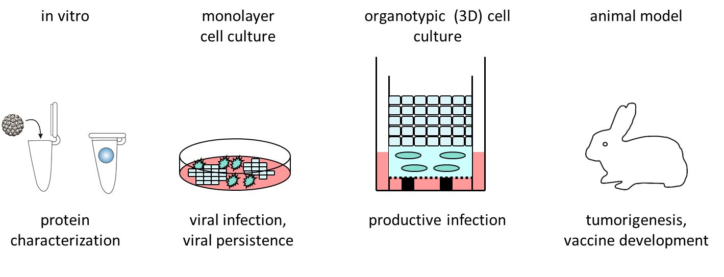 Our mission is to uncover the determinants of papillomavirus-induced cancer development at the molecular, cellular and systemic level using state-of-the-art techniques. We investigate viral entry, the viral life cycle and viral pathogenesis in vitro, in normal tissue culture, in three dimensional organotypic cultures and a rabbit model.