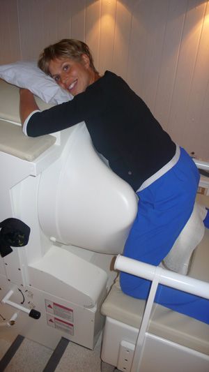 Ein wesentlicher Vorteil des Systems ist es, dass die Mutter bequem sitzend und nicht auf dem Rücken liegend untersucht wird, da die Rückenposition bei Schwangeren zu Übelkeit und Kreislaufbeschwerden führen kann. Ausserdem kann der Gerätesitz individuell an Körpergröße und Sitzkomfort angepasst werden.