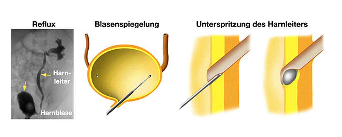 Abhängig vom Schweregrad kann unter antibiotischer Prophylaxe eine spontane Ausheilung, vor allem im ersten Lebensjahr, abgewartet werden. Bei fehlender Ausheilung oder bei Durchbruchsinfekten ist ggf. eine operative Korrektur notwendig. Diese kann entweder minimal-invasiv endoskopisch (Injektion von Dextranomer/Hyaluronsäure) oder offen durch eine antirefluxive Harnleiterneueinpflanzung in die Harnblase erfolgen.
