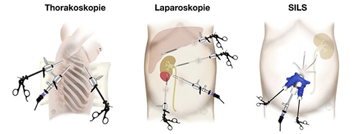 Neue Konzepte für die minimal invasive Chirurgie, wie "NOTES" (Natural Orifice Transluminal Endoscopic Surgery), SILS (Single Incision Laparoscopic Surgery)und SPA (Single Port Access) haben das Gebiet der Kinderchirurgie bisher noch nicht wirklich erreicht. Jedoch gewinnt die zunehmende Minimalisierung operativer Zugangswege nach der Etablierung der Laparoskopie und der Thorakoskopie besonders im Kindesalter an Bedeutung. Vorläufige Ergebnisse zeigen, dass sog. „Single Incision“ -Eingriffe Vorteile bieten. Hierbei wird über nur noch einen kleinen schnitt am Nabel laparoskopische operiert. Die Vorteile umfassen den reduzierten postoperativen Wundschmerz, eine raschere Rekonvaleszenz, und ein schöneres kosmetisches Ergebnis. Das Ziel eines narbenlosen operativen Eingriffs rückt mit der zunehmenden Etablierung von Operationen über nur einen Trokarzugang auch im Kindesalter näher.