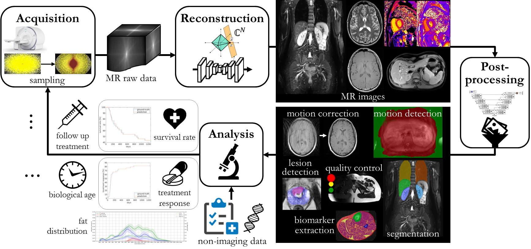 - Conventional and deep-learning based image reconstruction: Inclusion of multi-parametric and motion information, high-dimensional data processing, model-based reconstructions