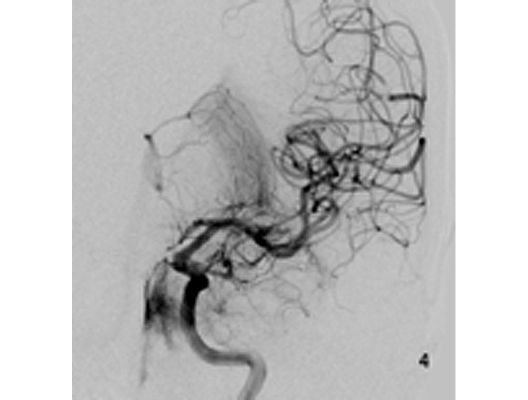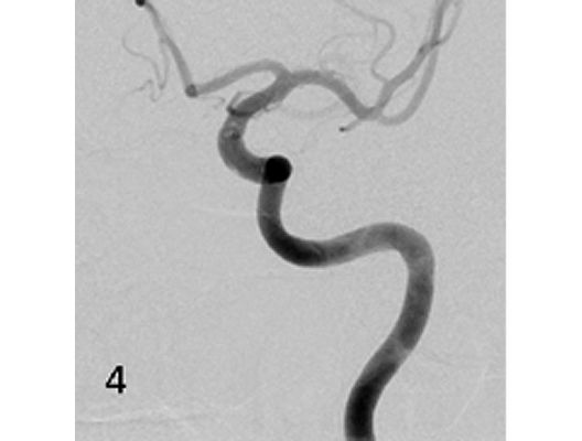 Mit den modernen Verfahren zur Wiedereröffnung von verschlossenen Blutgefäßen können wir Patienten mit Schlaganfall in vielen Fällen helfen. Das folgende Beispiel zeigt die angiographischen Bilder eines Patienten, der mit vollständiger Lähmung der rechten Körperhälfte und einer schweren Sprachstörung eingeliefert wurde. Ursächlich zeigte sich ein Verschluss der linken Halsschlagader, vermutlich auf dem Boden einer arteriosklerotischen Einengung (Bild 1). Das Gefäß wurde daraufhin mit einem Stent wiedereröffnet (Bild 2). Zusätzlich zeigte sich ein Verschluss der Endstrecke des Gefäßes durch Blutgerinnsel (Bild 3). Diese konnten vollständig entfernt werden (Bild 4). Der Patient erholte sich nach der Behandlung innerhalb weniger Tage vollständig.
