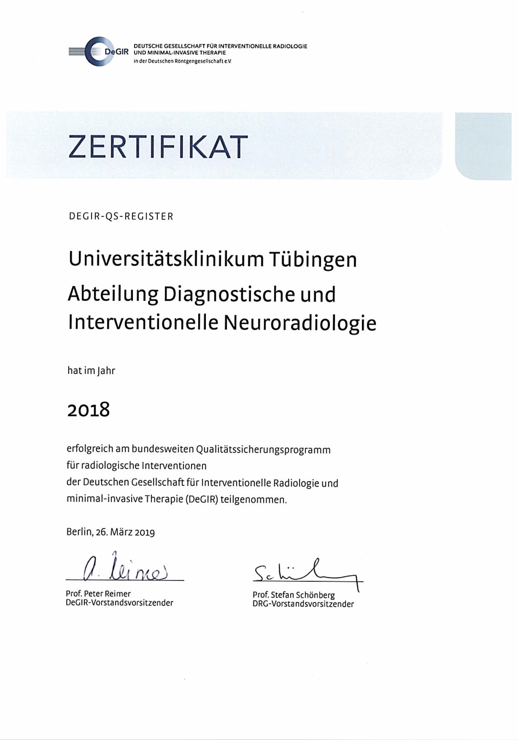 Zertifikat der Teilnahme am DEGIR-Qualitätssicherungsprogramm