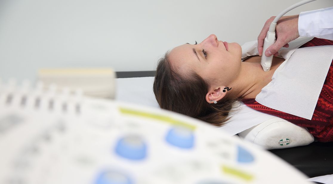Die Untersuchung der Schilddrüse hat das Ziel, krankhafte Veränderungen ihrer Größe, Struktur und Funktion nachzuweisen bzw. auszuschließen. Hierzu dient zunächst die sorgfältige Befragung des Patienten (Anamnese-Erhebung), bei der sowohl aktuelle Beschwerden wie auch frühere Erkrankungen erfasst werden. Hieran schließt sich eine körperliche Untersuchung an, deren Schwerpunkt das Abtasten der Halsorgane darstellt, die jedoch je nach Bedarf bis zu einer Untersuchung des gesamten Körpers erweitert werden kann. Anhand der so erhobenen Befunde wird eine Verdachtsdiagnose gestellt, aus der sich die Wahl der erforderlichen weiteren Untersuchungen ableitet.