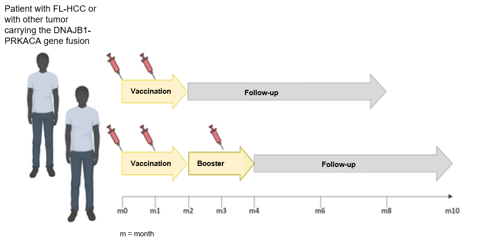 There is no systemic standard therapy (acting on tumor cells throughout the body) for advanced fibrolamellar hepatocellular carcinoma (FL-HCC). Also, for other tumor diseases with evidence of a DNAJB1-PRKACA gene fusion, such as certain malignant neoplasms of the pancreas or bile ducts, the medical treatment options are limited. The study investigates the therapeutic cancer peptide vaccine Fusion-VAC-XS15 in patients with fibrolamellar hepatocellular carcinoma or other tumor diseases with evidence of the DNAJB1-PRKACA gene fusion after successful initial therapy.