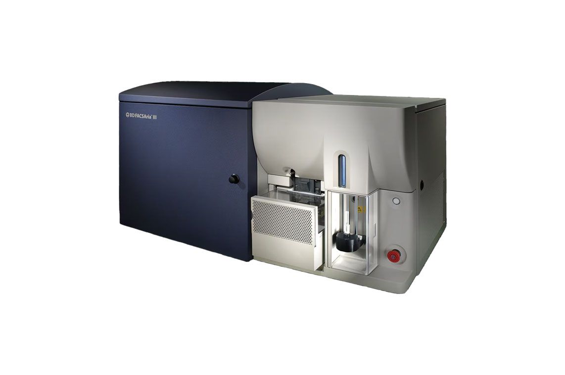 Cell sorting is performed by FCF staff on a BD FACS Aria cell sorter equipped with four lasers (355 or 402, 488, 561, 640 nm excitation wavelengths) and 14 fluorescence channel detection. The cell sorter is able to perform high-speed (up to 20,000 events/sec), high-purity (up to 99.9%) sterile sorts (biosafety level 2) into different types of devices (tubes, plates or slides). The cell sorter is operated by FCF staff during the extended business hours. We perform basic cell sorts (e.g. lymphocytes, DCs, cells lines, transfected cells,..), but also complex sorts under sterile conditions (e.g. use of near UV-laser for stem cell side population of tumor tissue), sorts into 96- or 384-well plates with defined cell numbers (even single cells) and more.