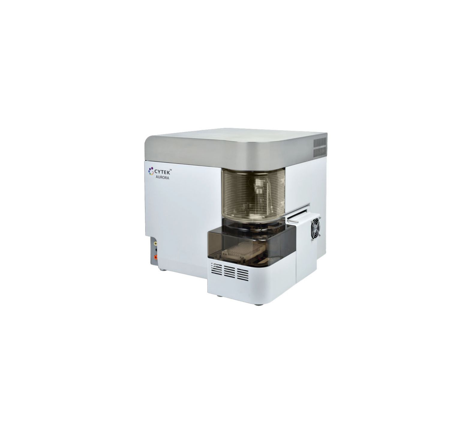 The CYTEK™ Aurora allows separation of fluorochromes with very close emission profiles. This enables the use of a wide range of new fluorochrome combinations. The machine is equipped with UV, violet, blue, yellow/green and red lasers and provides up to 64 fluorescence channels. A plate sample loader is part of the assembly. The AURORA is available for independent use following a training by the FCF staff.