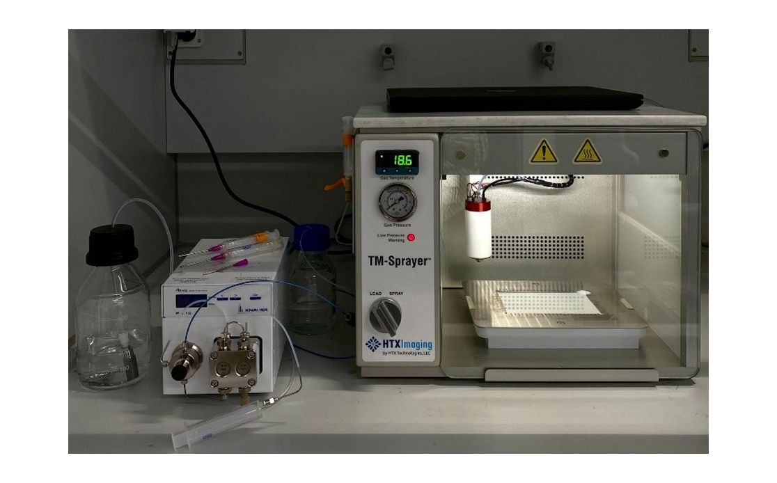 The HTX TM-Sprayer™ is a user-friendly, versatile spraying system that automates sample preparation, ensuring a highly uniform and consistent matrix coating for matrix-assisted laser desorption/ionization (MALDI) imaging mass spectrometry (IMS) workflows.