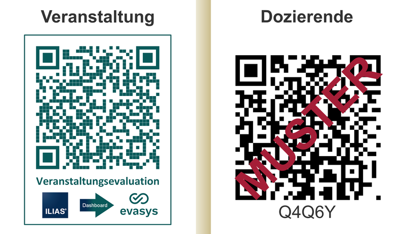 Es gibt verschiedene QR-Codes für die Veranstaltungsevaluation und die Dozierendenevaluation.